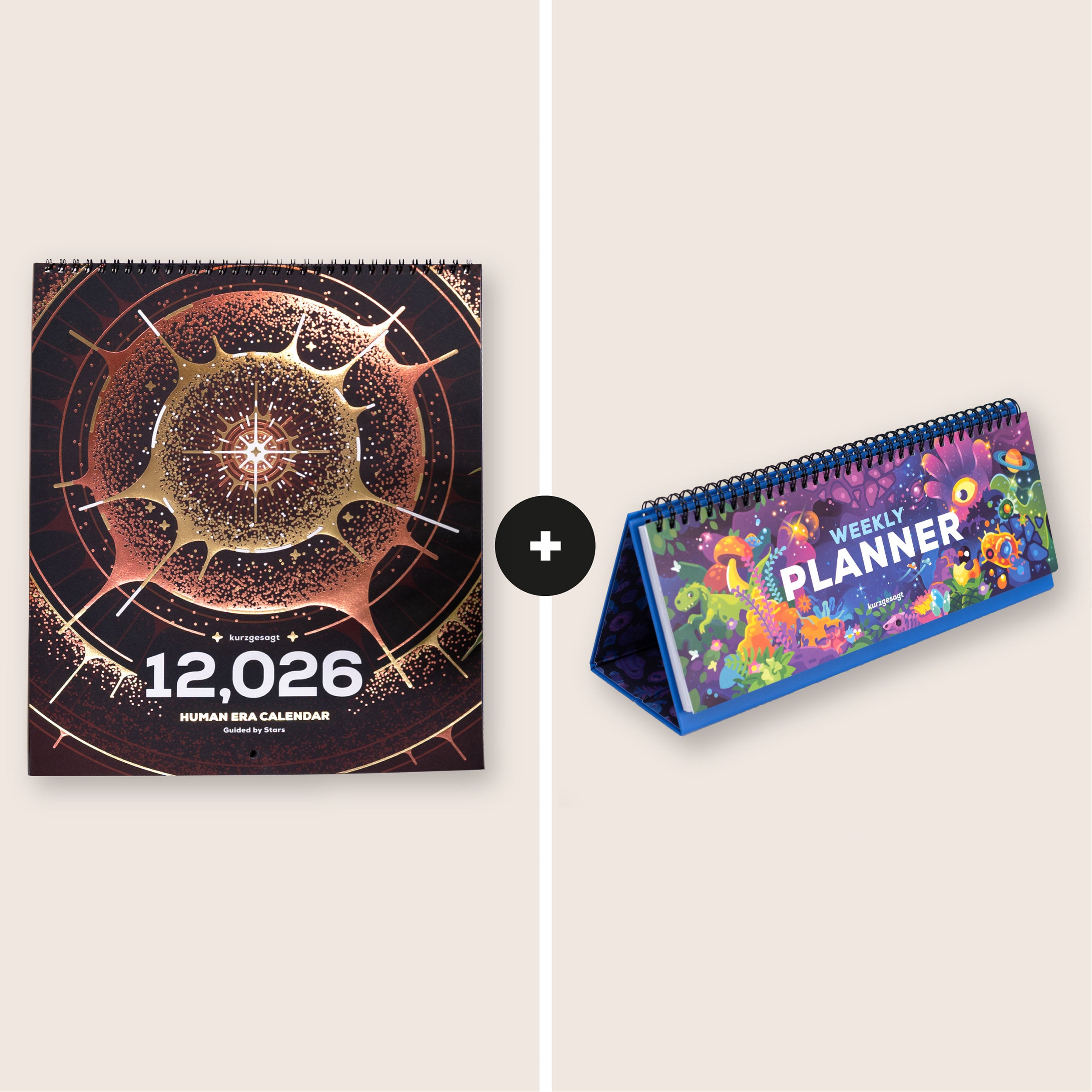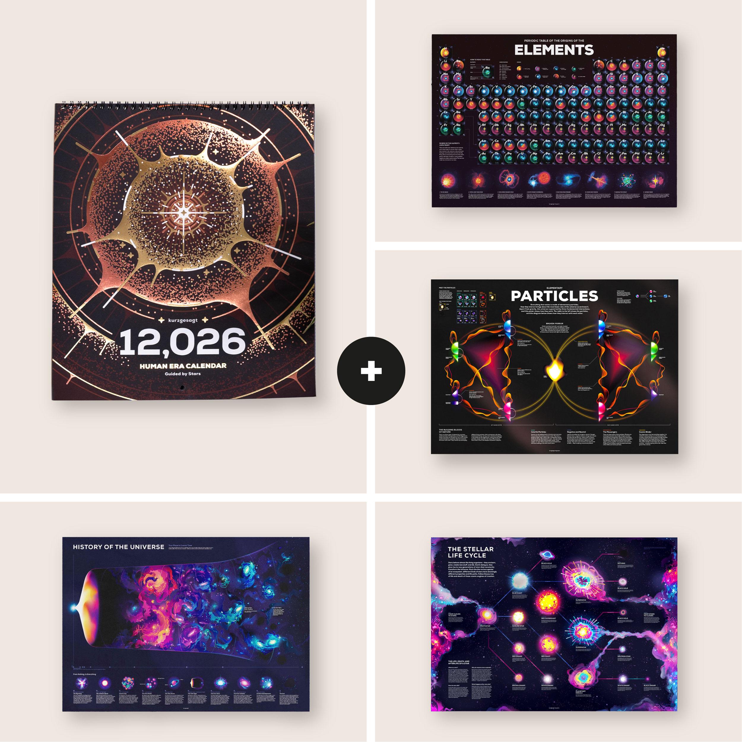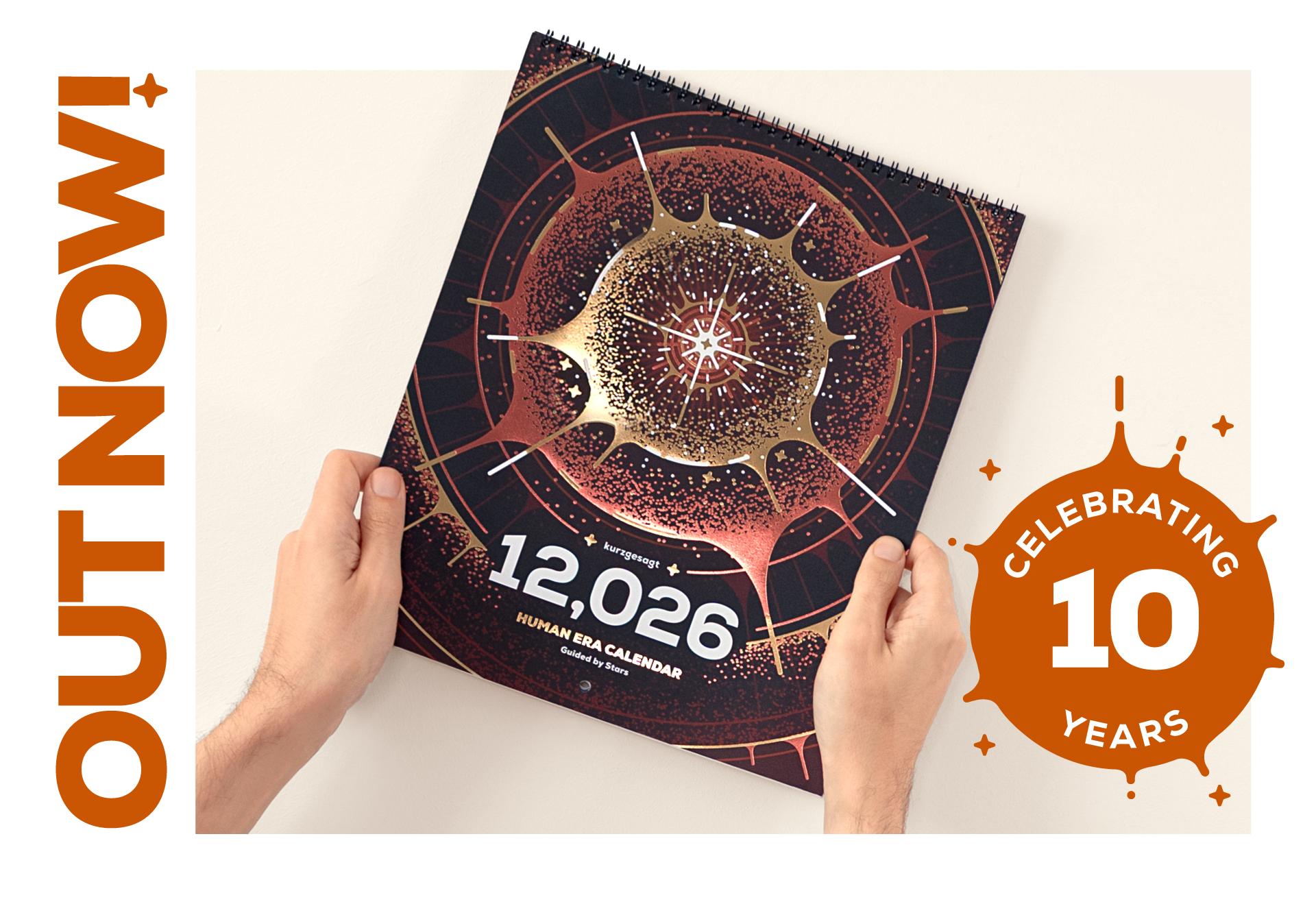 In 12,026, join us on an inspiring journey through space and time to discover humanity's special connection with the stars. Made entirely by humans and crafted with love to bring you a year's worth of kurzgesagt for your walls. Get it now and support another year of free science content for millions.