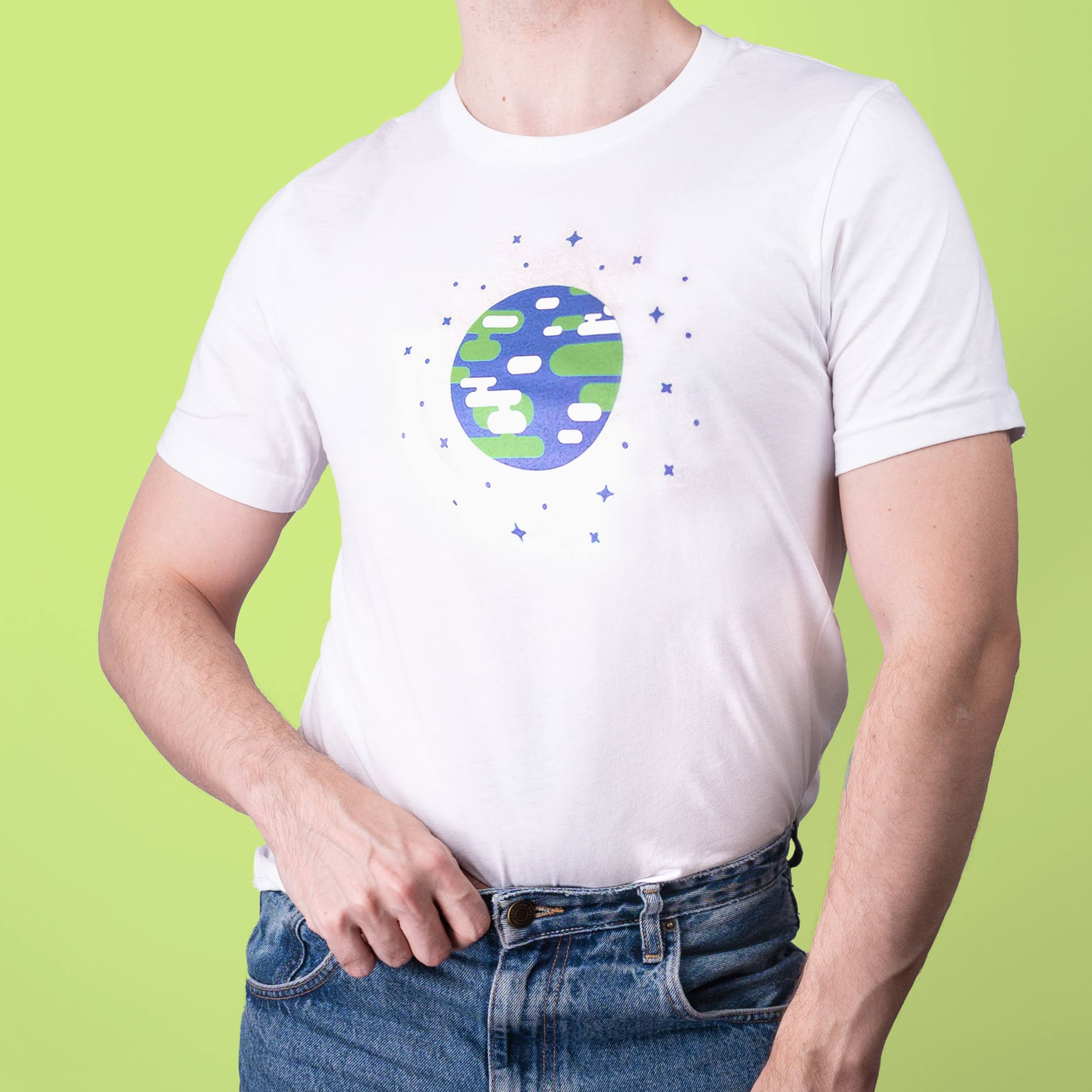 • Screen print of kurzgesagt earth on chest