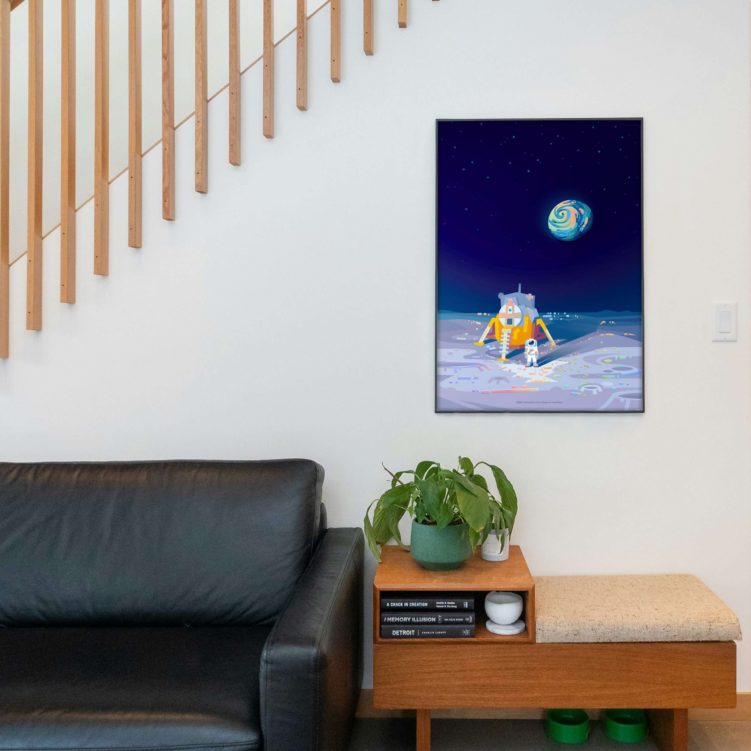 The Apollo 11 landing was humanity’s first step onto another world – this artwork captures that breathtaking view as a stunning memento for your home.