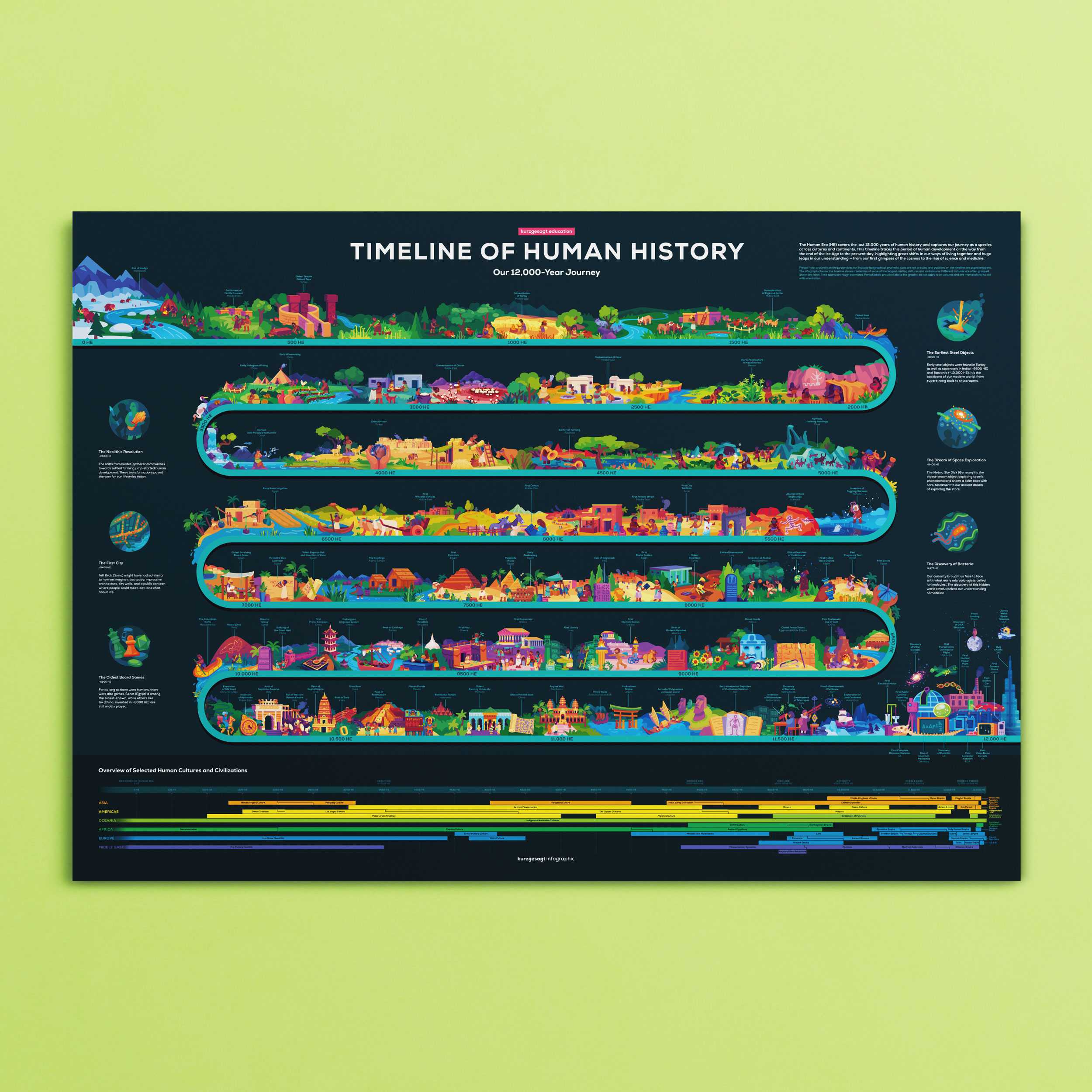 Experience 12,000 years of human innovation brought to life in this beautifully detailed print. Although the Human Era may be brief in the grand scheme, prepare to be astonished by our remarkable progress.