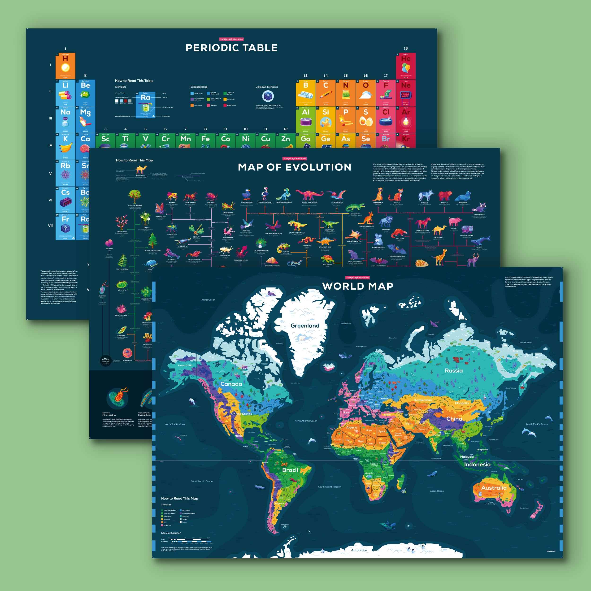 Spark curiosity at home and in the classroom with this collection of three colorful, meticulously-researched science prints – now with 25% off! Each poster is sized A1 (84.1 × 59.4 cm) and printed on durable, high-quality paper. Frames not included.