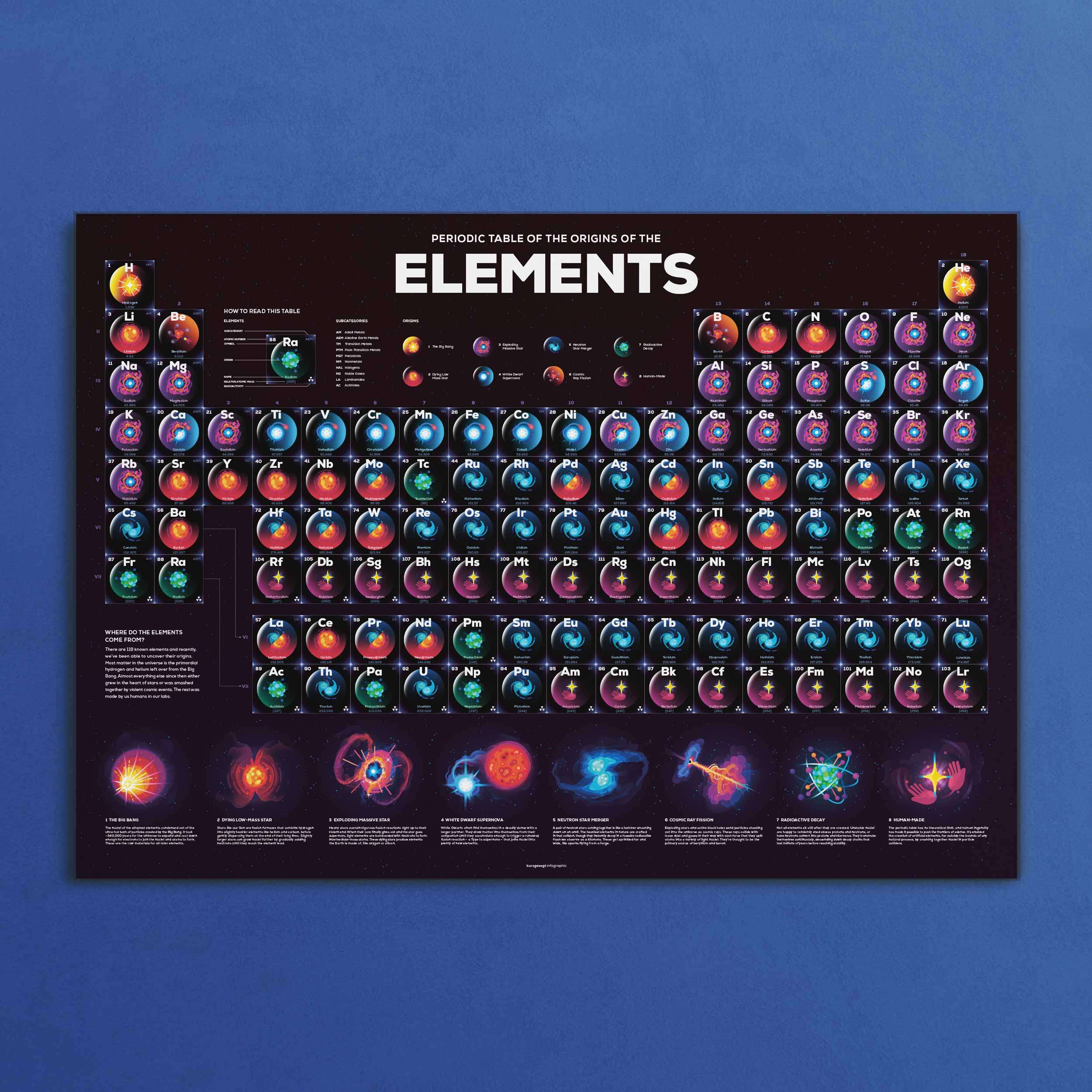 Every color-coded cell tells a story – from the white dwarf supernovae that gave us iron, to the neutron star merger that created silver. It’s a whole universe of information, packed into one stunning grid.