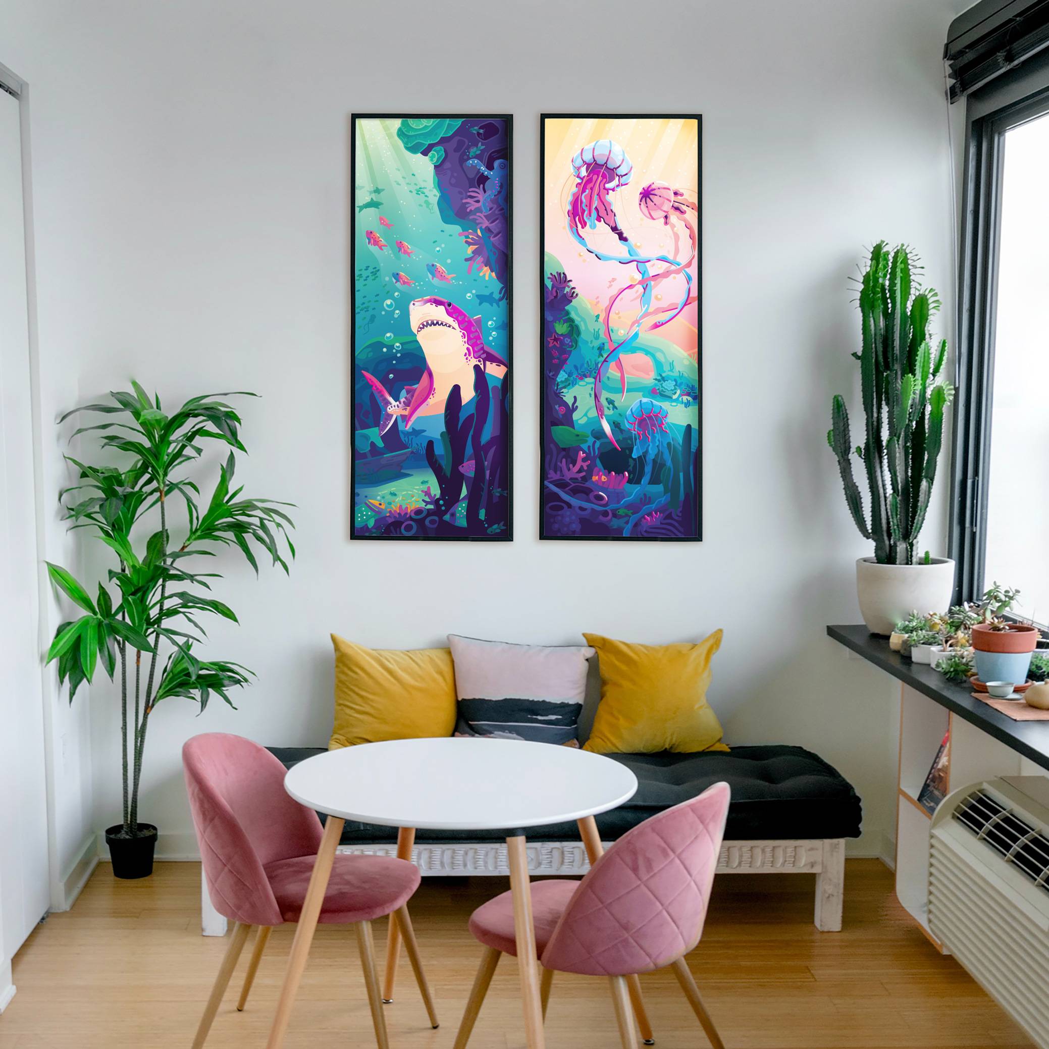 This art print pairs perfectly with the "Shiny Shark Poster". Hang both side-by-side to have a dreamy ocean aquarium in your home.
