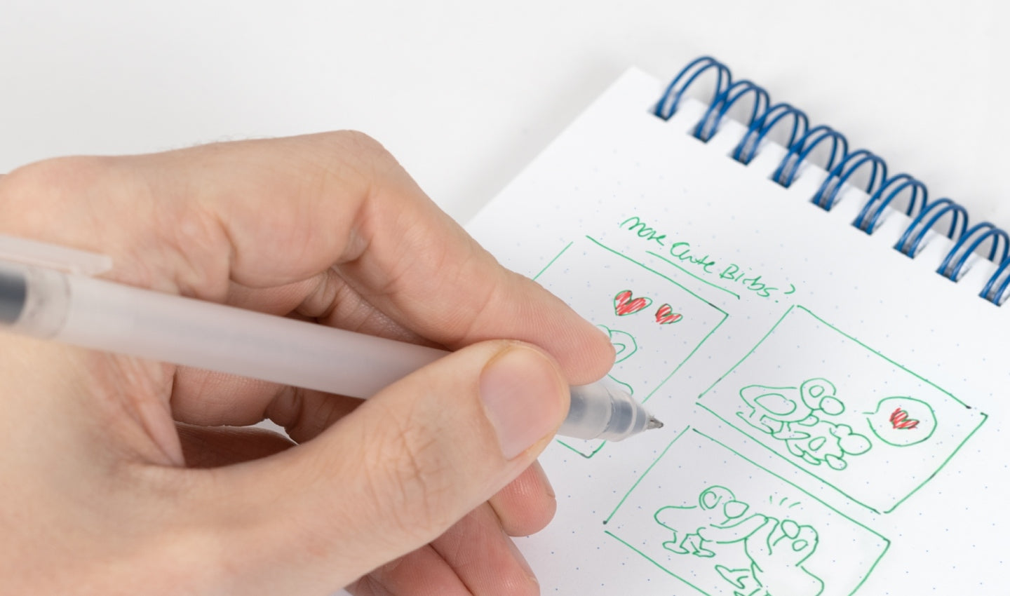 Thick materials and metal wire-o-binding make this notepad extra sturdy. The turned-over carton cover helps you sketch and take notes without a table in reach.