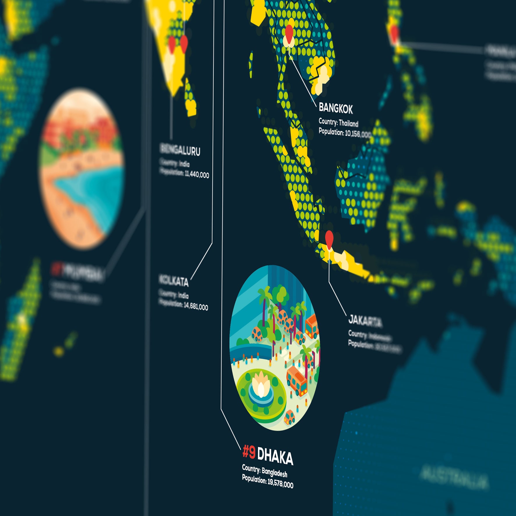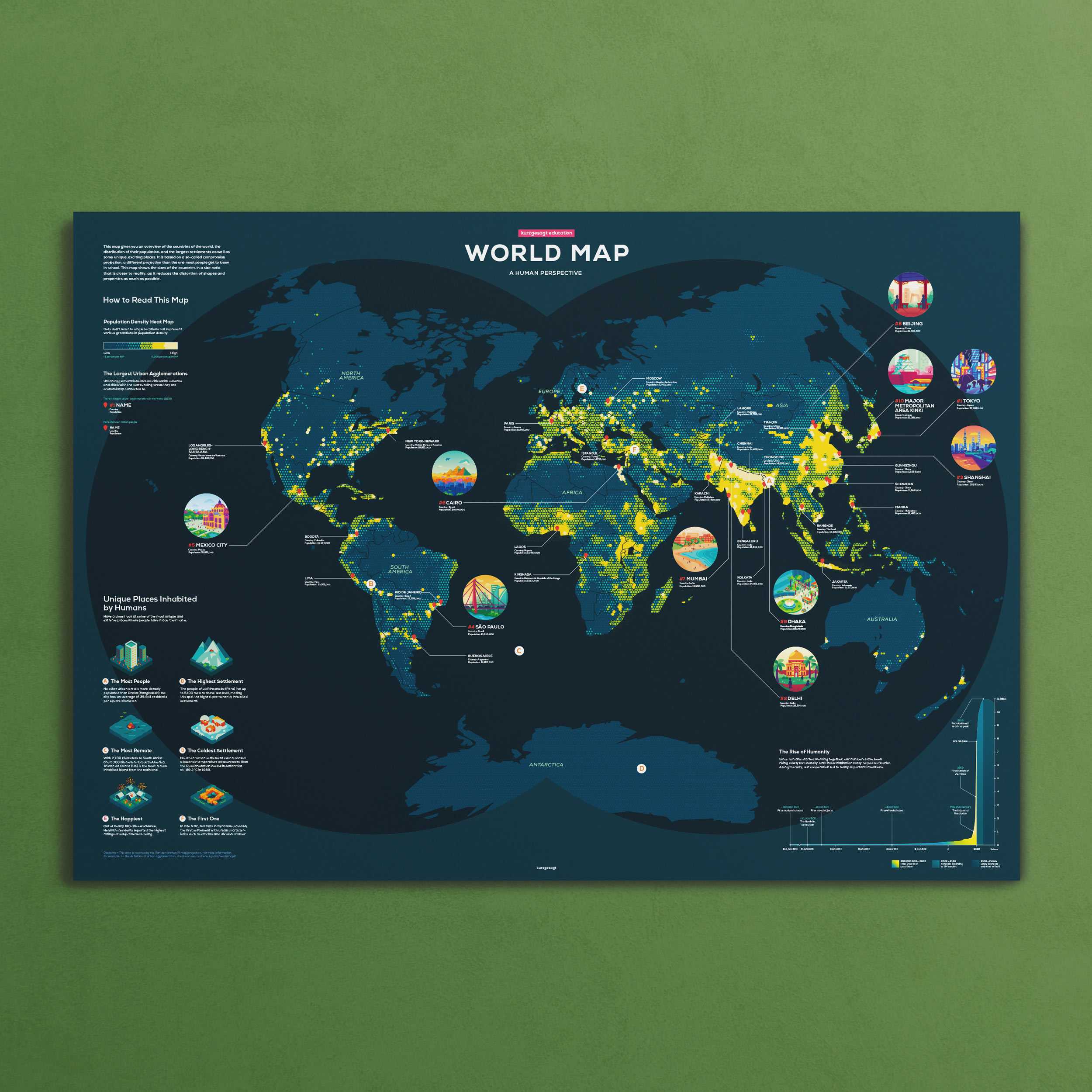 Explore how far humanity has come already! Use the heat map to visualize population density. Uncover fascinating facts about unique places inhabited by humans.