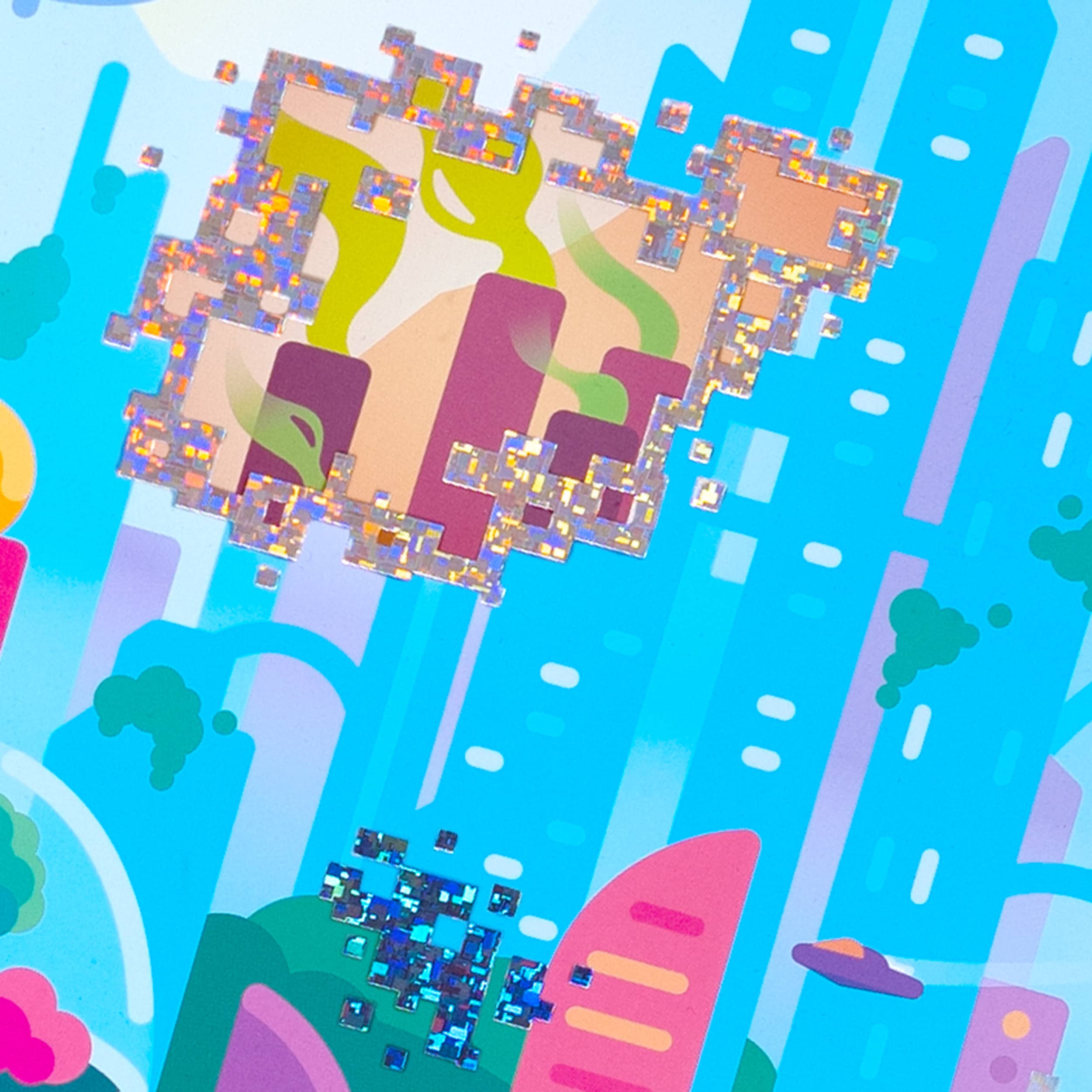 Printed with high-quality foil details, this poster will be the sparkling star of any wall. Trust us: the dreamy holographic shine is even prettier in reality.