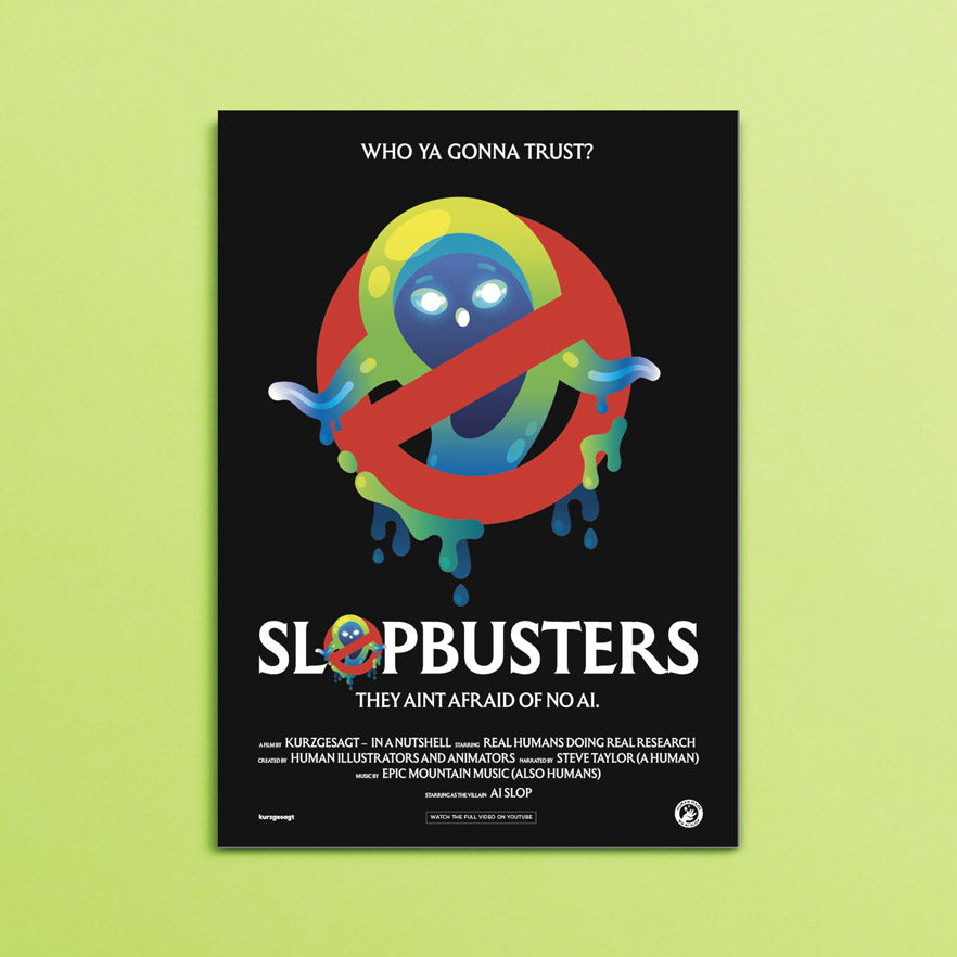 Inspired by our video "AI Slop", our latest movie poster is a spookily-good-looking tribute to real creativity and human-made charm. Like everything kurzgesagt, it's slime-free, AI-free, and 100% human-made.