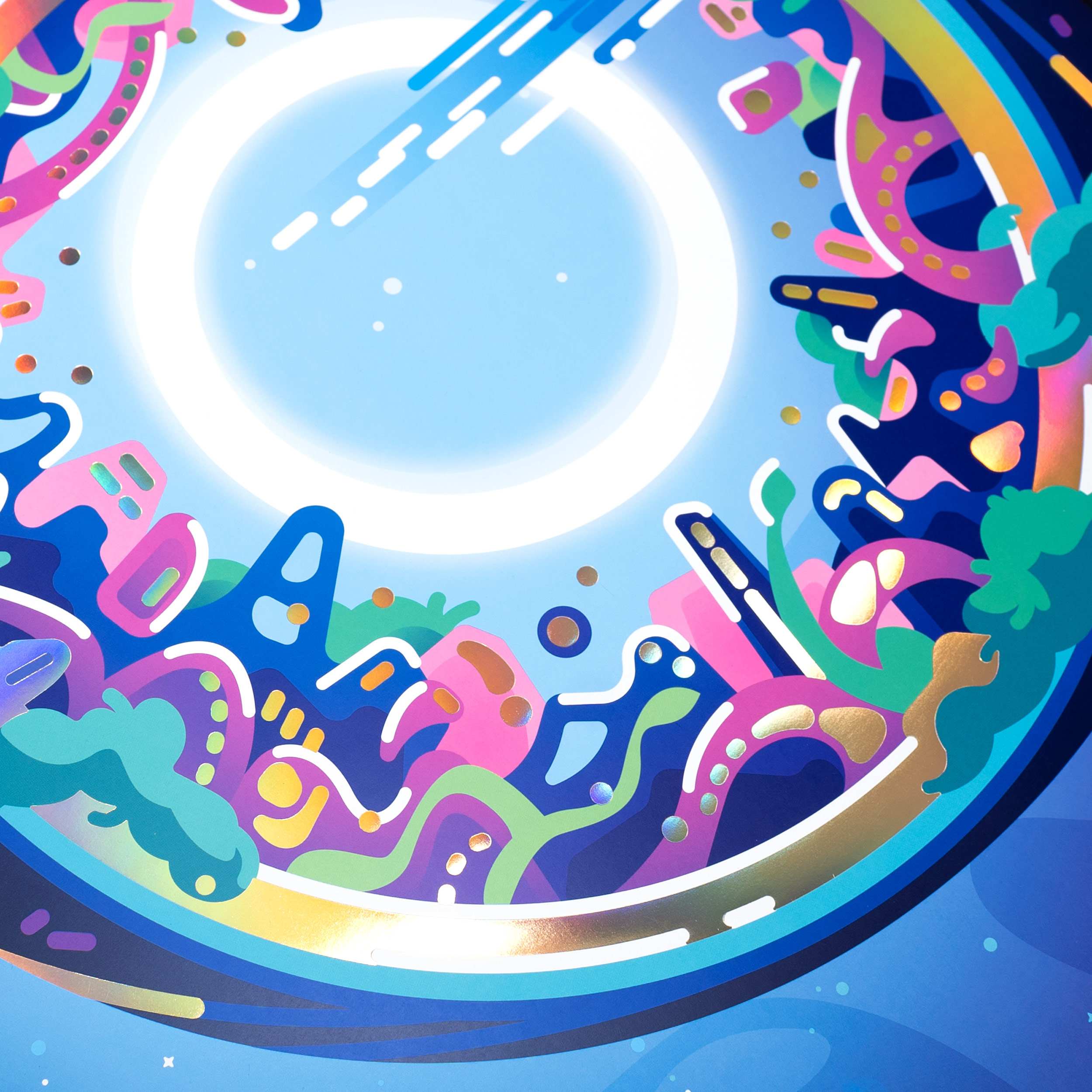Each poster features striking foil details that catch the light and elevate the futuristic aesthetic. The dreamy golden-colored shiny is even prettier in reality.