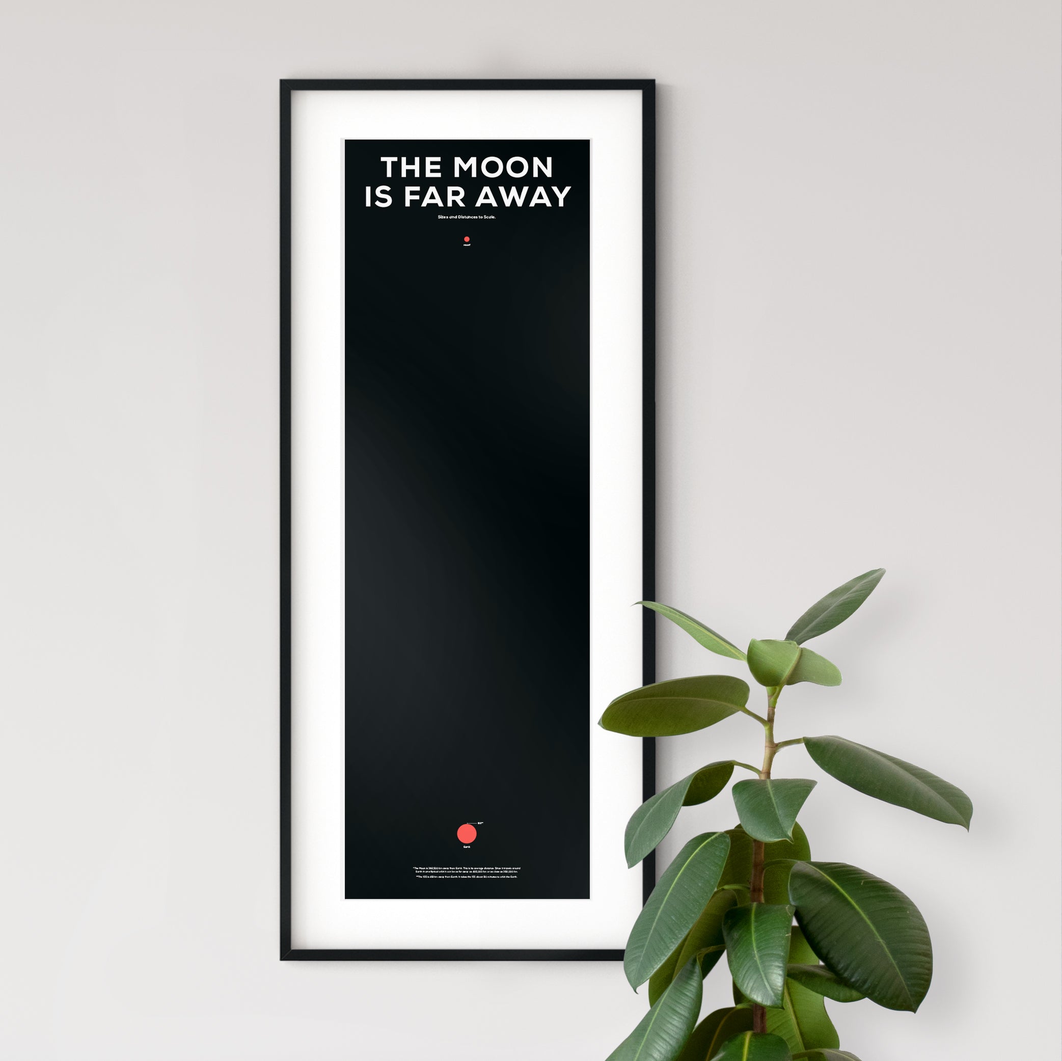 An awe-inspiring visualization of the vastness of space! Get this poster for yourself or as a clever gift for someone you love to the moon and back (which is apparently pretty far).