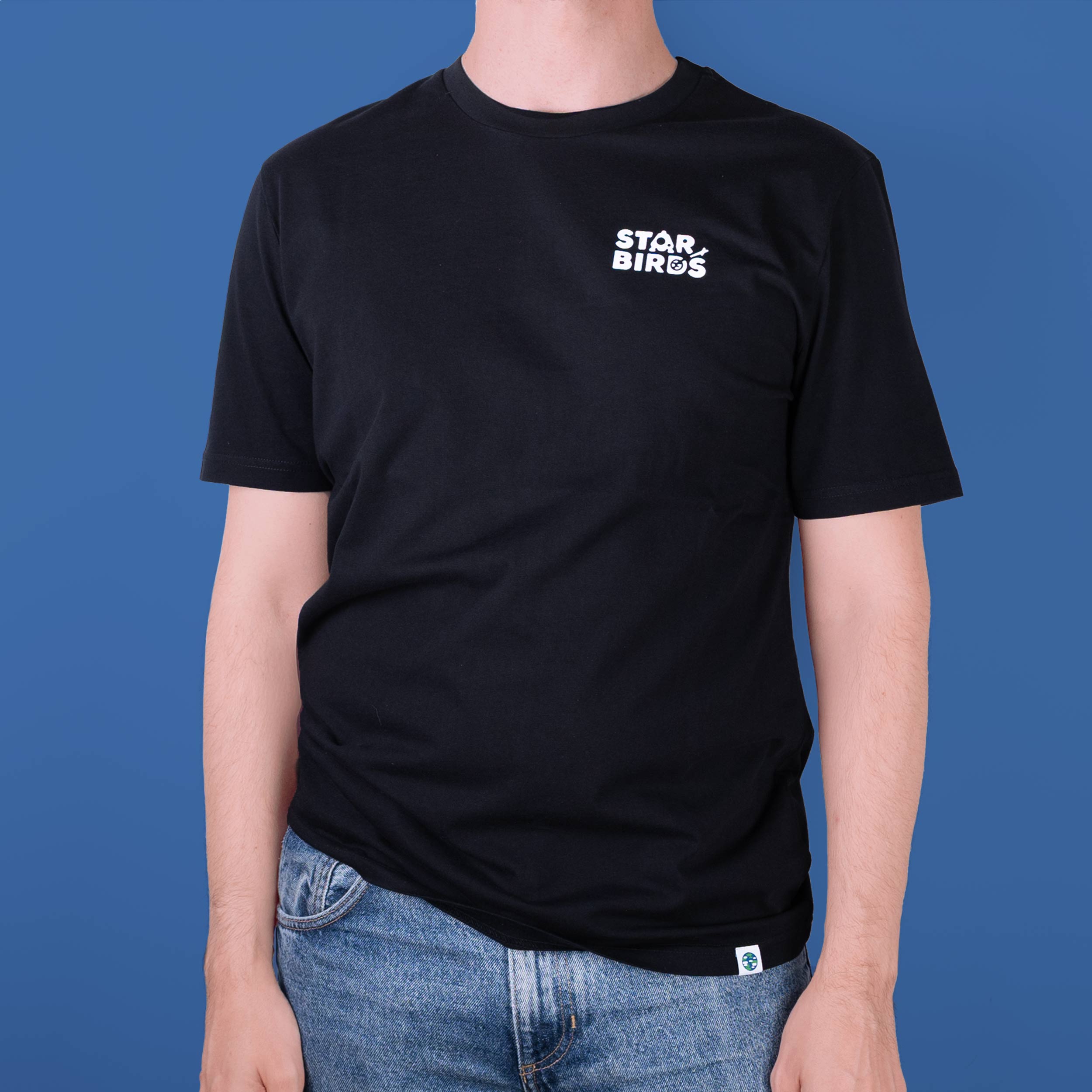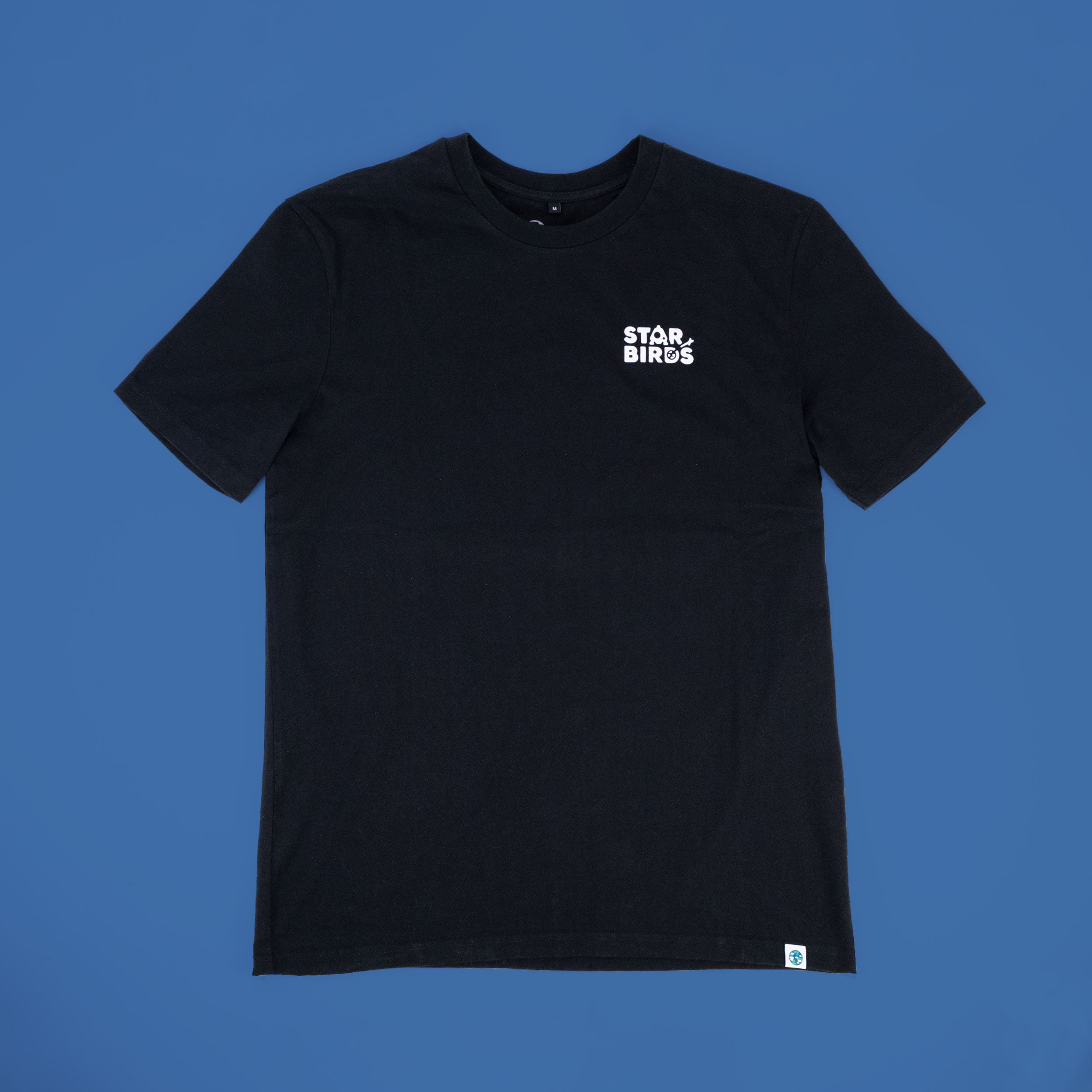 • Minimal Star Birds logo on the front, colorful asteroid base design on the back