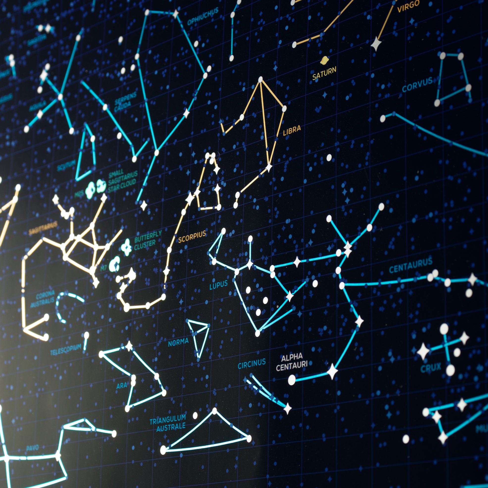 Printed with metallic foil on premium quality paper, these stars and constellations will sparkle softly. It's the perfect way to have your own night sky at home.